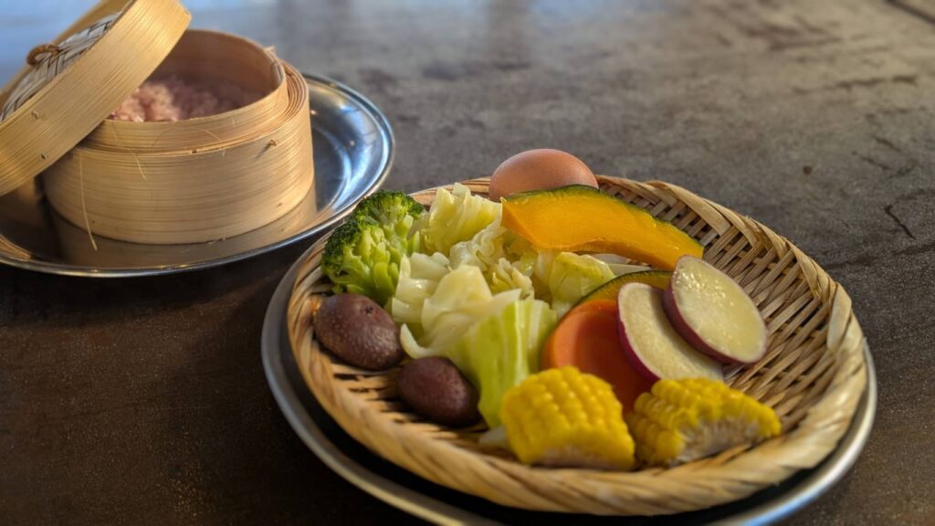 別府で食べられるのは温泉の噴気で蒸し上げる「地獄蒸し」と呼ばれる伝統料理なんですが、これがものすごく美味しくて…!